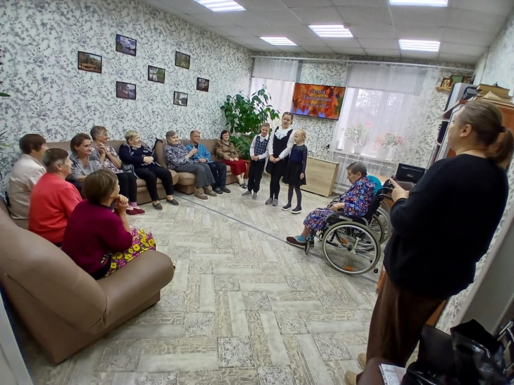 Сегодня дети Филиала МБОУ "Средняя общеобразовательная школа деревни Охона" (коррекционная школа) подготовили трогательное поздравление для бабушек и дедушек, пожелали им здоровья, долгих лет жизни. Учащиеся МАОУ СШ №2 передали поздравительные открытки. По доброй традиции в этот день побывал в гостях полюбившийся молодой музыкант Савин Егор.
