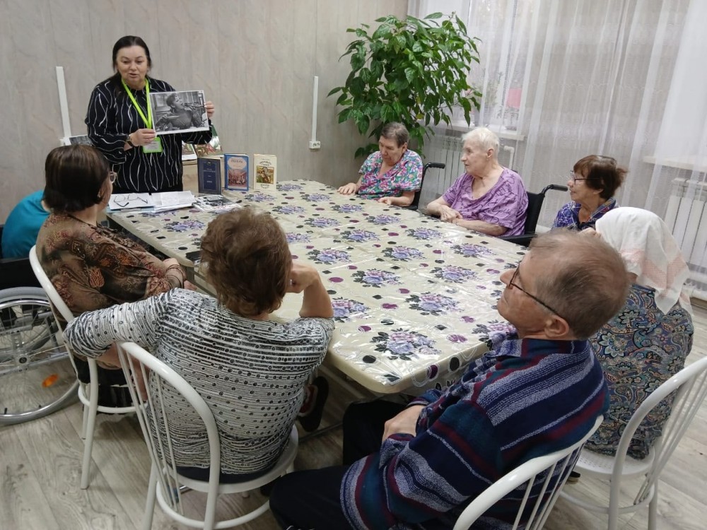 Сегодня библиотекарь Вера Валентиновна Рябкова провела для проживающих стационарного отделения арт- встречу "Заутренние метамарфозы".