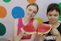 Воспитанники приюта не смогли пройти мимо такого замечательного события. И, конечно, полакомиться сочными кусочками свежего арбуза, да не просто так, а соревнуясь "Кто быстрее? ", " У кого больше семечек? "