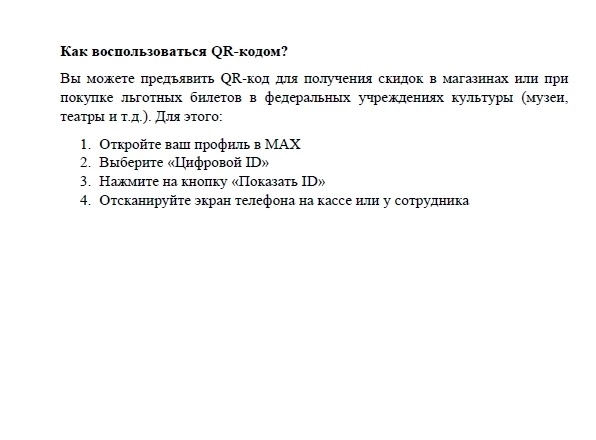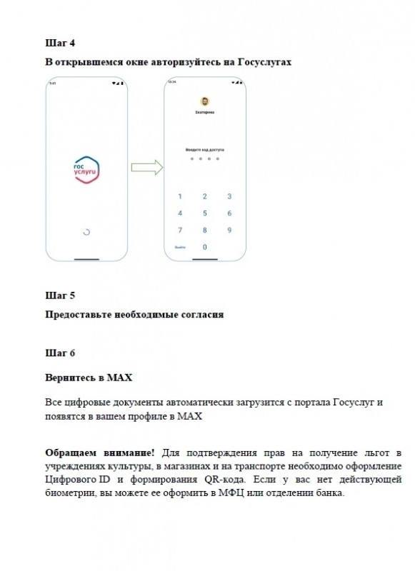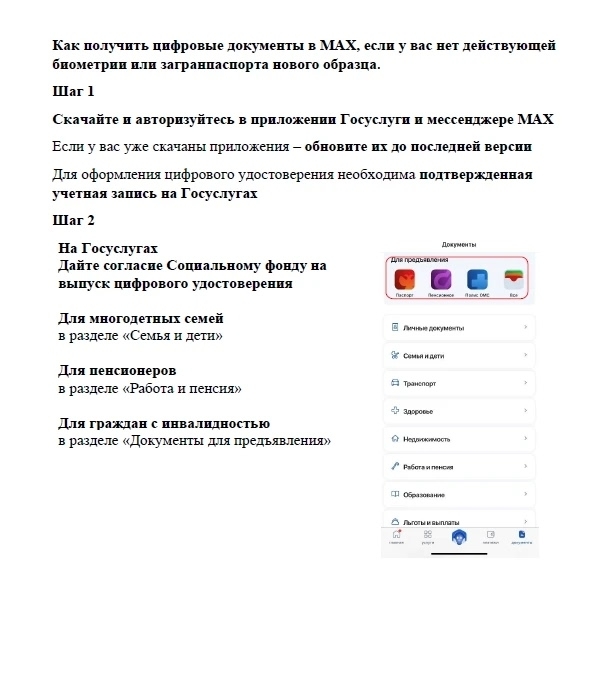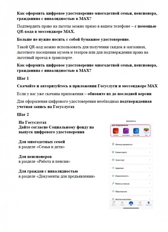- инвалиды.Этот единый QR-код является цифровым ID гражданина. Формирование QR-кода для льготных категорий граждан на ЕПГУ (Госуслуги) закрыто, подтвердить право на льготы теперь можно только в мессенджере MAX.Прикрепляем инструкции для оформления цифрового удостоверения в MAX (с использованием биометрии и без).