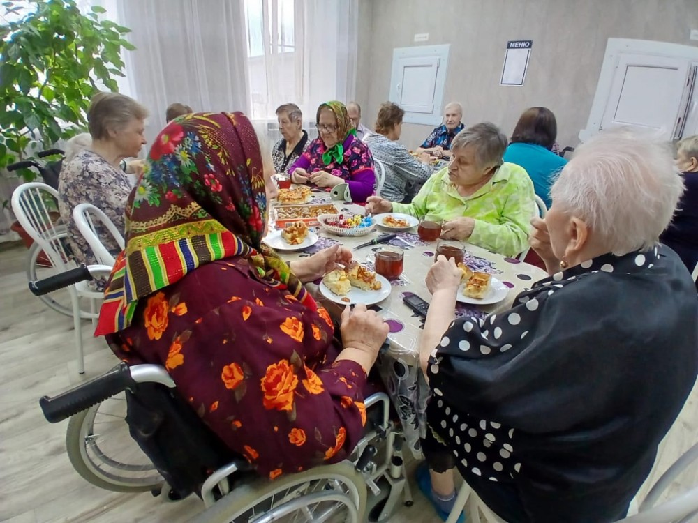 Сегодня в стационарном отделении прошло праздничное мероприятие "От всей души с поклоном и любовью", посвящённое дню пожилого человека. Для проживающих был организован сладкий стол для чаепития.