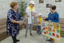 Для визита к бабушкам и дедушкам ребята подготовили целую программу: они пели песни, читали стихи, танцевали и вручили всем поздравительные открытки, сделанные своими руками.